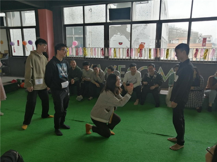活動精心設計了自我介紹、互動游戲等豐富多彩的活動環節,調動起62名青年男女們的熱情參與,在活動開始前主持人介紹了到場嘉賓、活動流程、進行隨機分組,組成的4個隊,每名隊員依次進行自我介紹相互認識,推選隊長,并設計出屬于自己的隊名“乘風破浪”、“最襯打工人”、“黑色向日葵”、“龍馬精神”,4個小隊經過接力拼圖、T恤氹氹轉、你演我猜、射擊保齡球等符合青年人的游戲,全場氣氛一度進入新的高潮,給青年男女們更多接觸和交流的機會,也充分展現青年們健康向上、富有活力的良好風貌,“最襯打工人”隊依靠大家默契的配合取得勝利。中午以自助餐的形式大家圍坐在一起,輕松愉悅的用餐氛圍,使男女青年們很快熟絡起來,并增進了友誼。