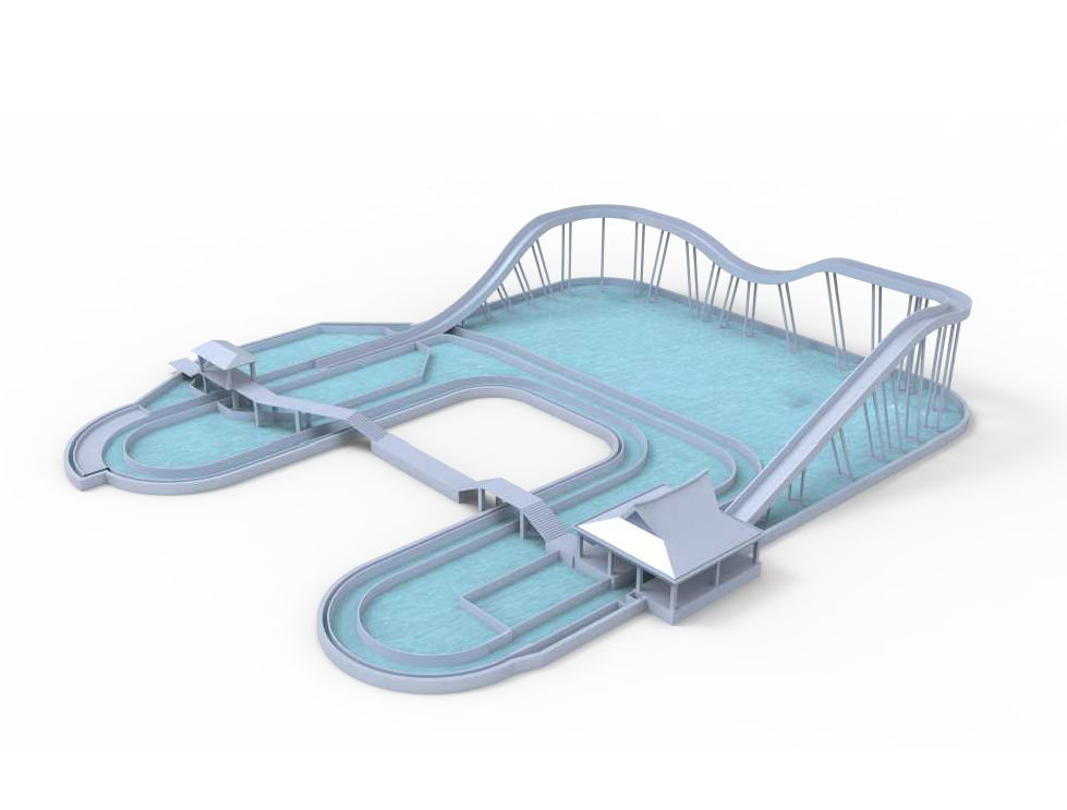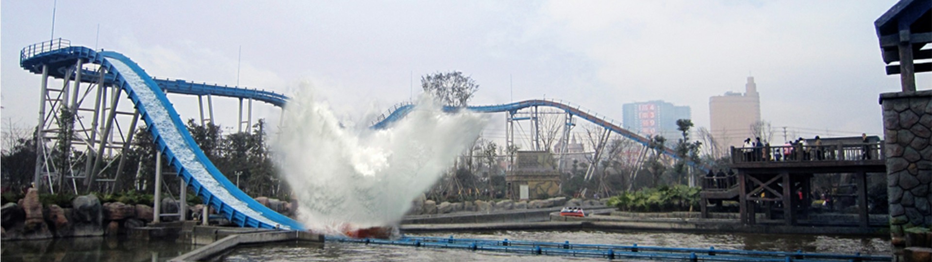 激流勇進設備提升?度17.8?,軌道蜿蜒??,抵達?坡制動段后經過減速到達下沖段,進?快速下沖。乘客在游玩過程中,體會?速沖浪、失重、離?、浪激等多重刺激,其樂?窮。