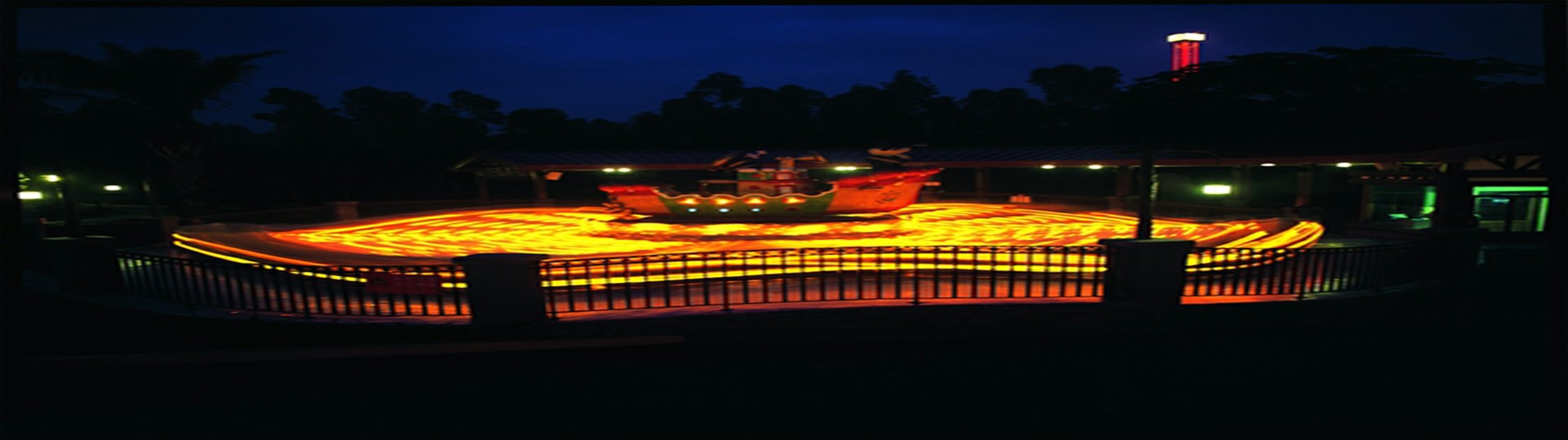 轉(zhuǎn)臂帶動(dòng)船體旋轉(zhuǎn),船體沿著落差達(dá)到0.8米的路軌上下升降,快速旋轉(zhuǎn)當(dāng)中,游客交替感受到上升超重和下降失重,猶如大海行船,波濤洶涌,驚心動(dòng)魄。配上美麗動(dòng)感的燈飾,大型逼真的艦艇船模,氣勢(shì)磅薄的場(chǎng)面,是最吸引人的游藝機(jī)之一。