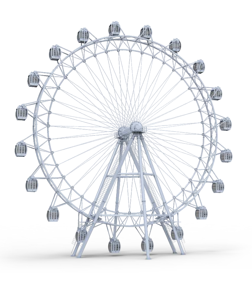 觀覽?輻條式轉(zhuǎn)盤設計,使其更為輕巧靈便。設備?度低于50?,輕巧、靈便,屬B級游樂設備,設備檢驗更為省?。20個6?座艙,外加10.2分鐘/周的旋轉(zhuǎn)速度,使其擁有?運營搭載效率。