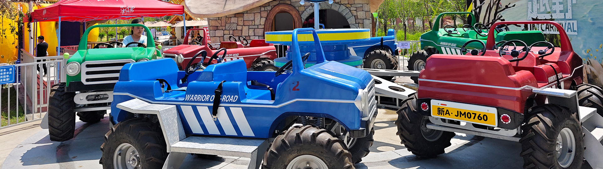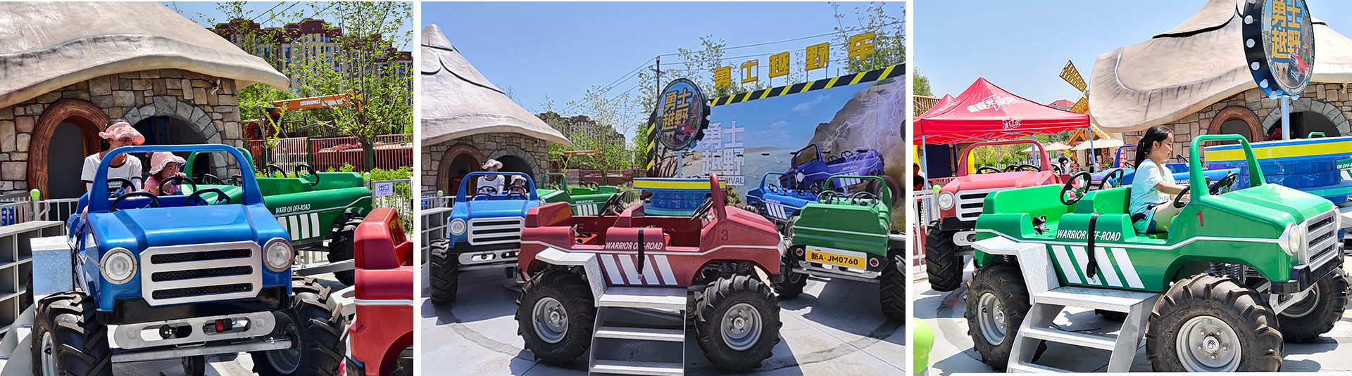 勇?越野?,以越野?為主題,?體繞中?旋轉,同時在路軌上設有兩個障礙坡。通過坡道產?短暫的懸空狀態,讓游客體驗?躍的感覺。整體包裝設計采?越野?狂野的造型,巨?的輪胎加以?屬質感的?殼,仿佛西部?仔馳騁于?壁,體驗狂野的感覺,深受?童/親?游客的喜愛。