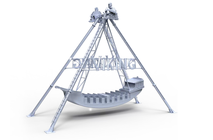 海盜船繞水平軸來回擺動,模擬海盜乘風出海的場景,交替而至的失重和超重感讓乘客盡情體驗搖擺的樂趣。8排座椅,承載38人。