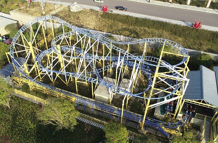 摩托過??的座艙以摩托賽?為造型,采?機械彈射?式,滑?段軌道模擬多重轉彎路況,配合適當的軌道傾?,使乘客在最?程度上體驗摩托??賽的驚險與刺激。路軌采?分層?式布置,有效縮?設備占地?積。