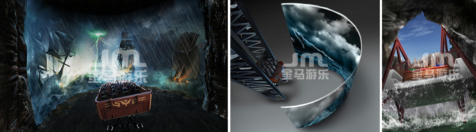 本項目由傳統(tǒng)的激流勇進(jìn)與影視元素相結(jié)合,船體造型新穎,此項目的車體運(yùn)行設(shè)有俯沖、傾斜、速降等元素,讓游客沉浸于驚險刺激的游樂體驗中。