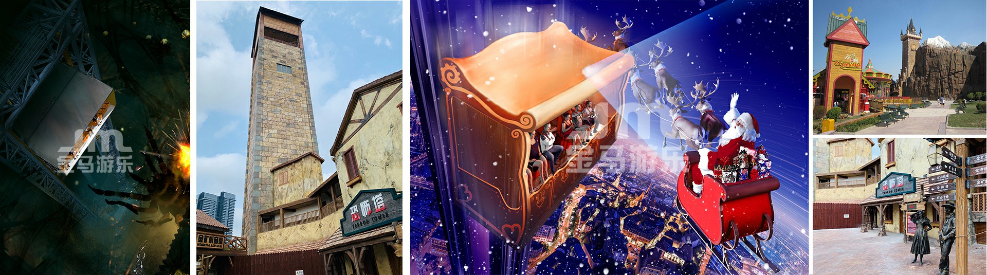 影視跳樓機將跳樓機和視覺影院完美融合,是顛覆傳統的高科技娛樂項目。乘客坐在轎廂式座艙中,配合銀幕內容,體驗緩慢爬升、急速下降、失重墜落的超強快感,驚險畫面帶來的視覺沖擊,讓乘客經歷一場緊張刺激的的旅程