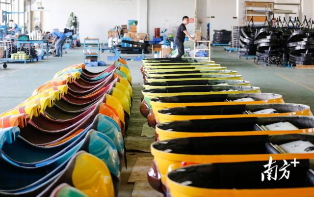 在金馬游樂港口鎮廠區的生產車間內,一些制作完成的碰碰車外殼碼放整齊,等待出庫。回溯過去30余年,這個小小的游藝車里承載了“金馬”的創業史。