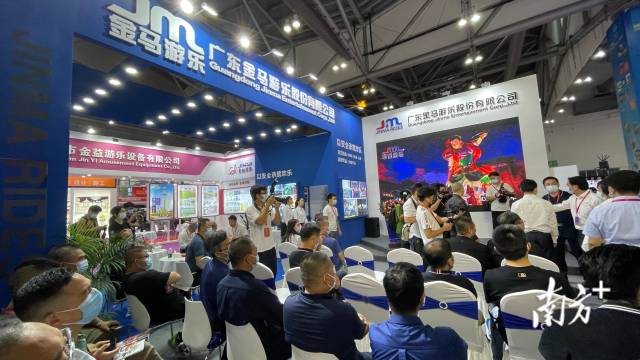 當天,“金馬游樂”首次以全新的面貌參加了“2021中山游博會&中山旅博會”,并在中山博覽中心舉行新品發布會,發布了酷炫過山車、大嘴鳥過山車、逍遙花燈、64座自控飛機、時空特警5款全新產品。